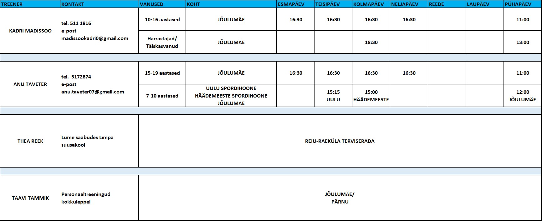 Treeningute info